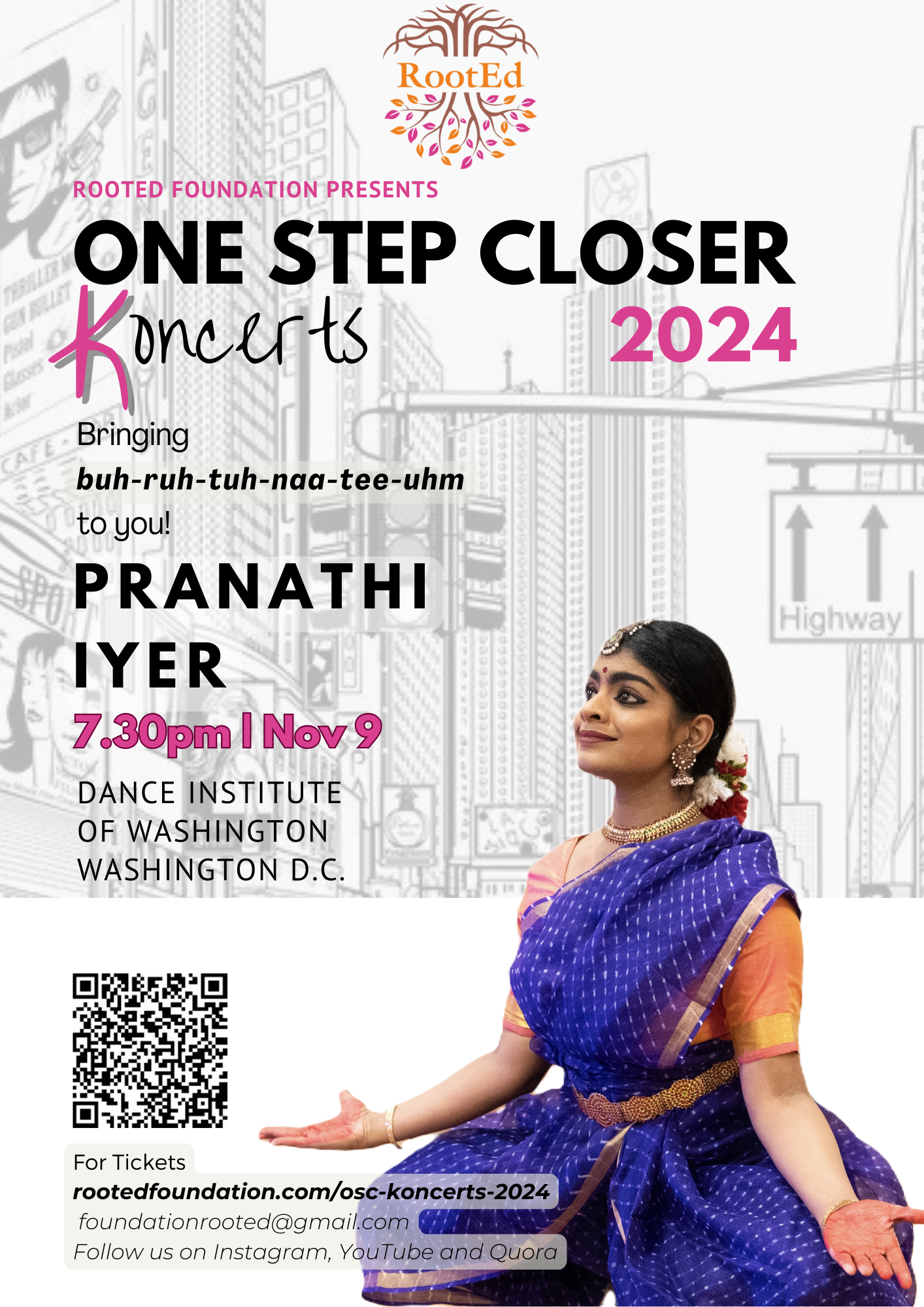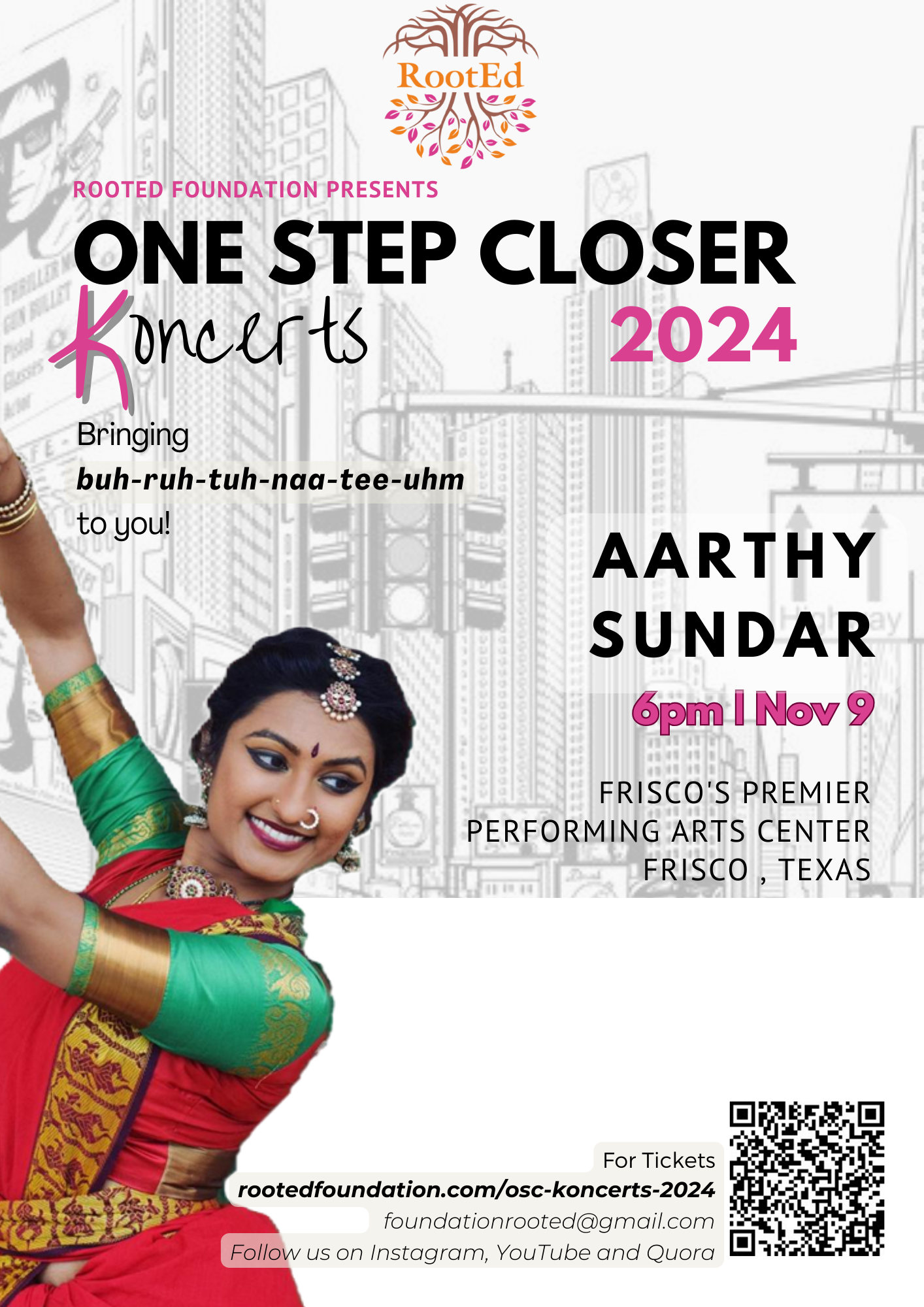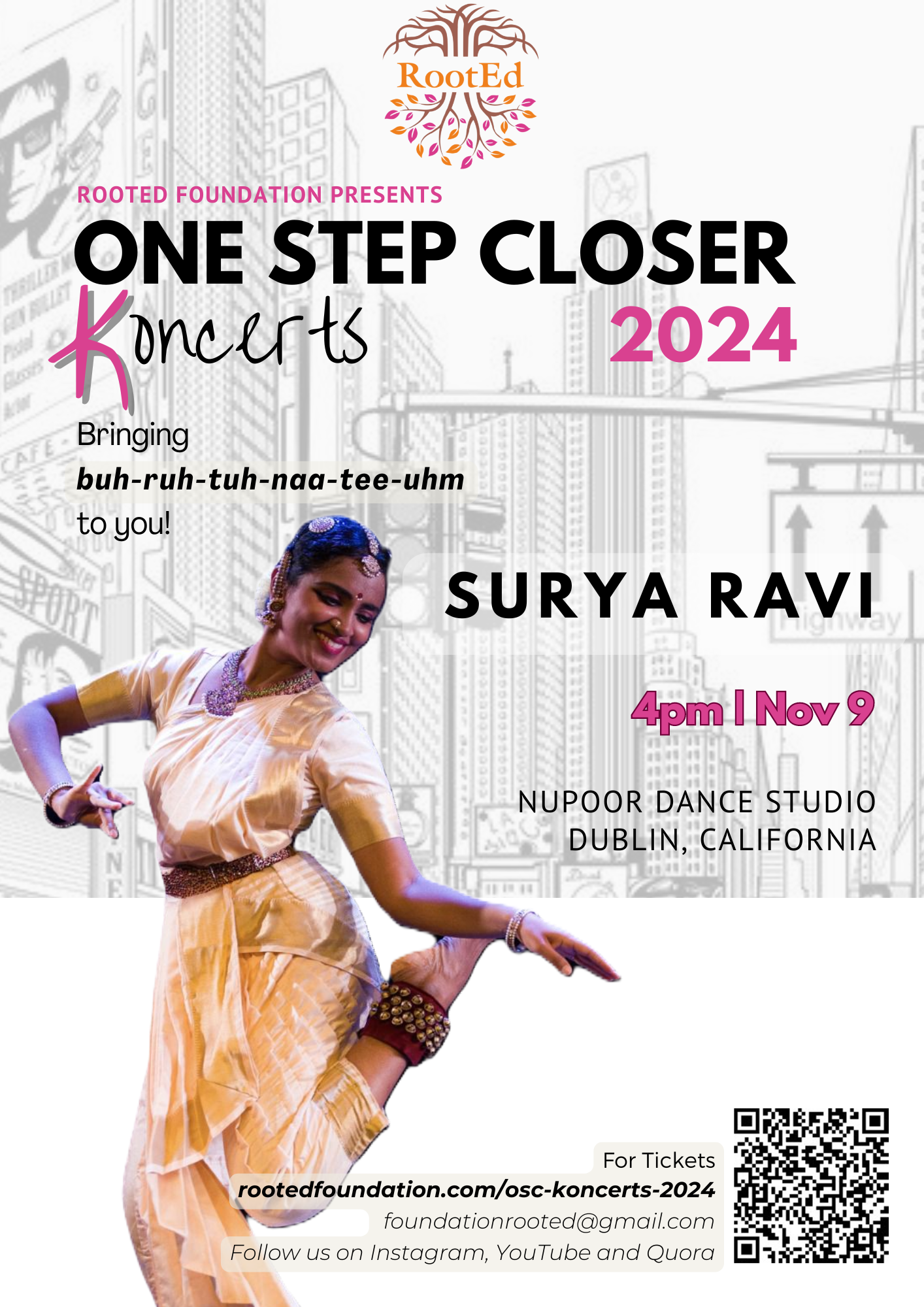 One Step Closer Koncerts is a multi-city dance festival seeding the coming together of artists and audiences in the Indian Classical Art of Bharatanatyam (pronounced buh-ruh-tuh-naa-tee-uhm).